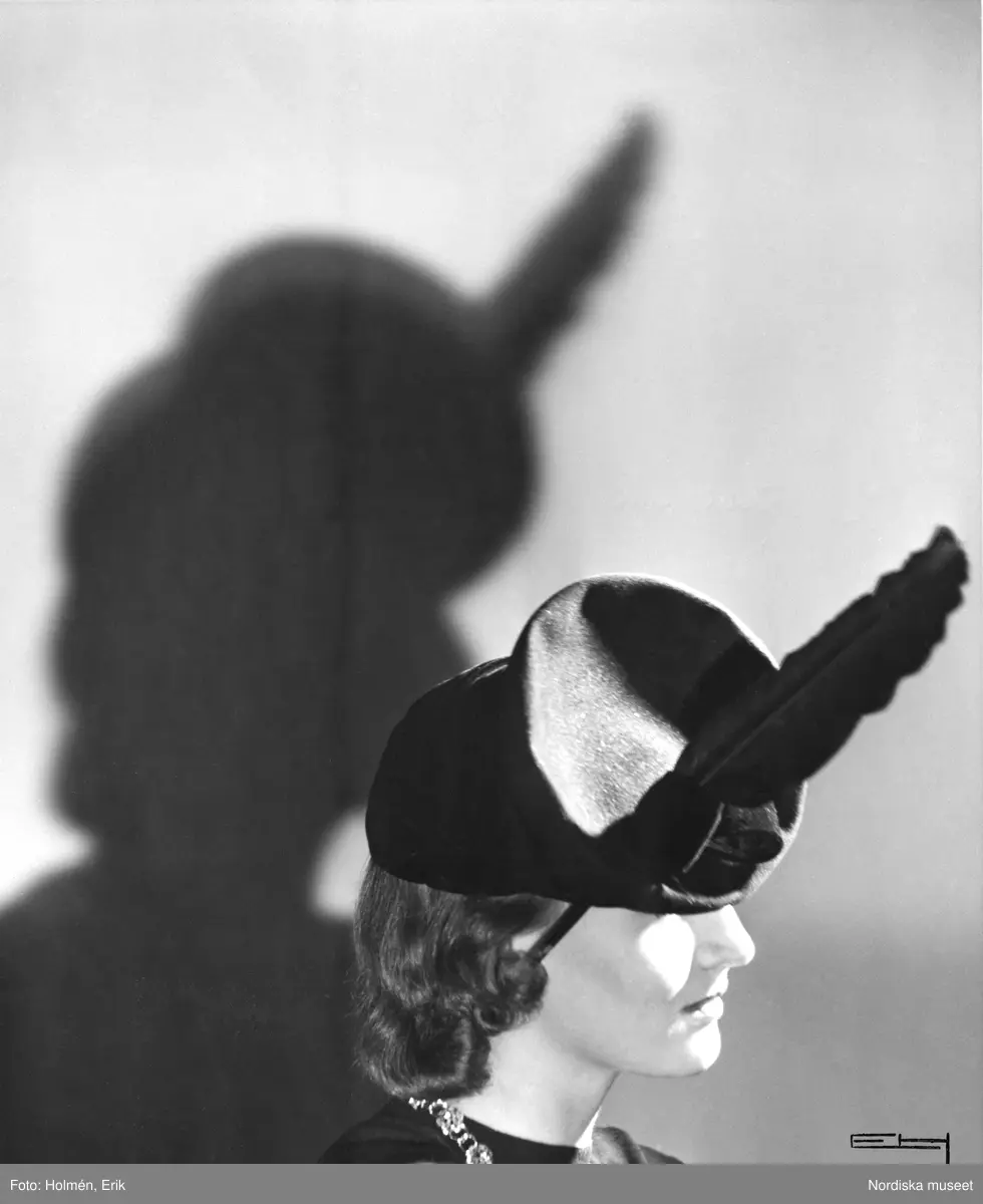 Porträtt av kvinna i hatt med fjäderpenna av Blanche and Simone.