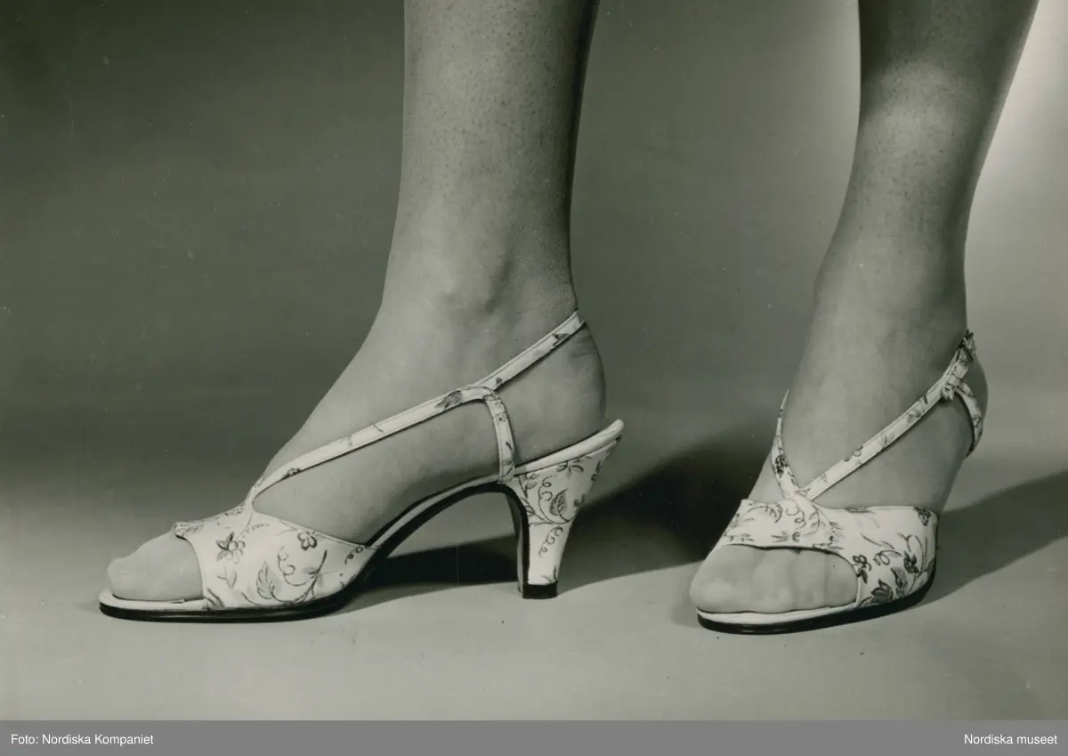 Sandal, öppen häl och tå, blommönstrad, klack.