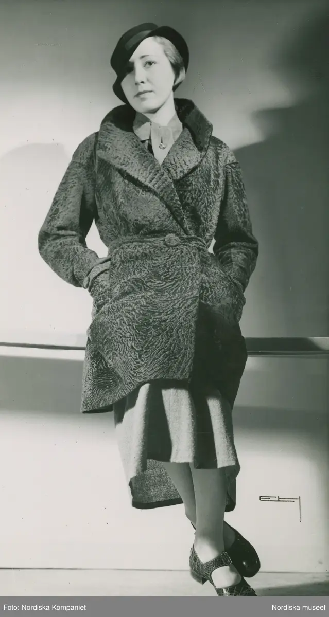 Modell i pälskappa, hatt och skor i krokodilskinn.