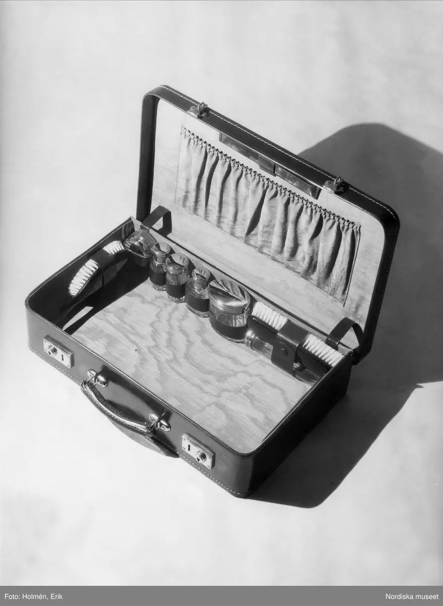 En väska med diverse innehåll. Nordiska Kompaniet.