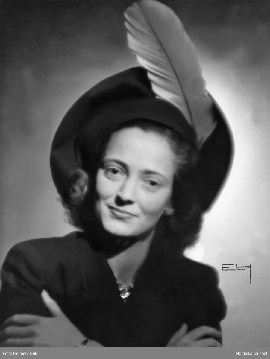 Brun hårfilt med gul penna. Nordiska Kompaniet.