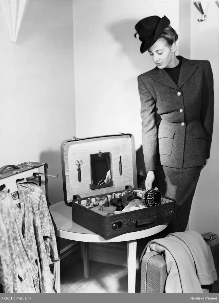 Reseeffekter. Kvinna med resväskor, Nordiska Kompaniet.