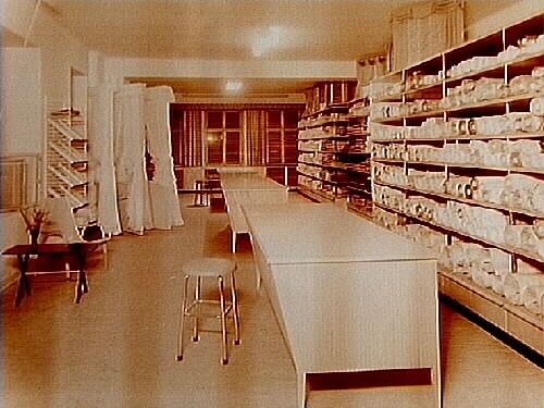 Klaessons Möbelaffär, interiör från gardinavdelningen.
