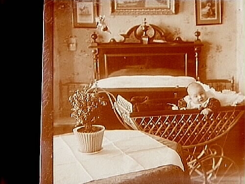 Ett barn i barnvagn.