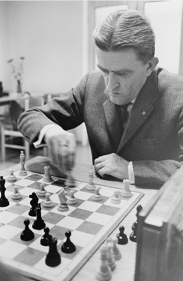 Postdirektör Folke Reinholdsson inbegripen i ett parti schack.