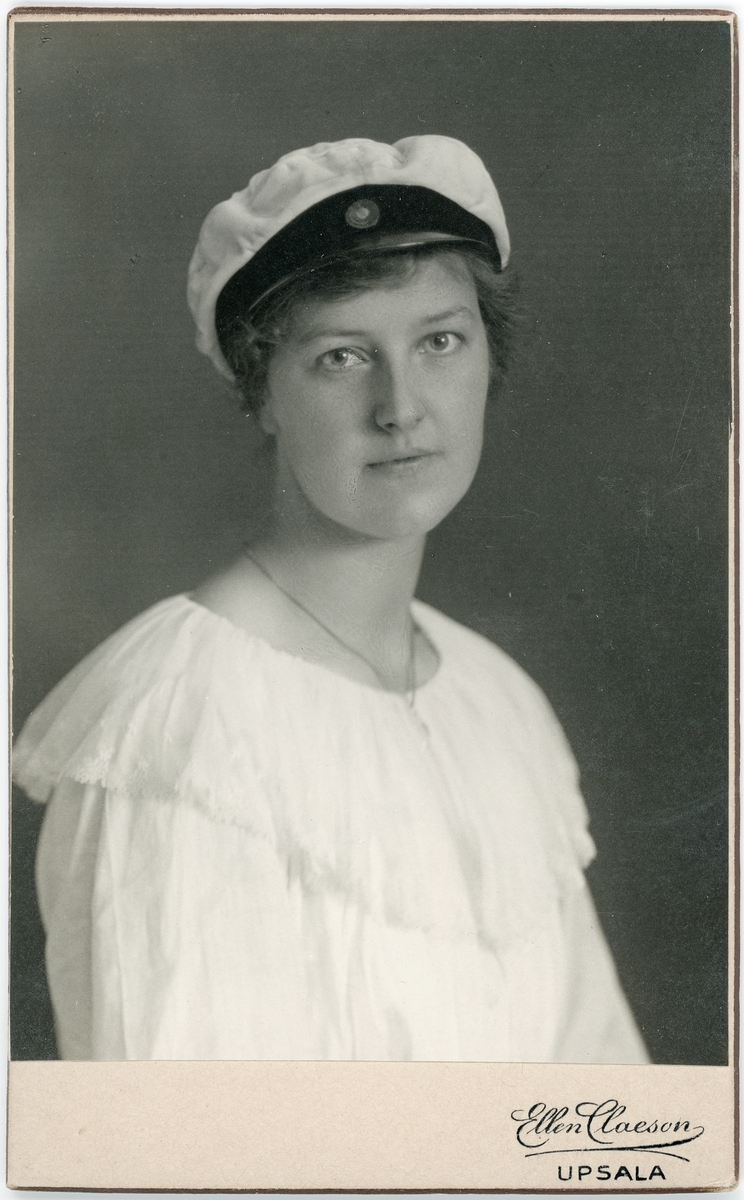Kabinettsfotografi - ung kvinna i studentmössa, Uppsala