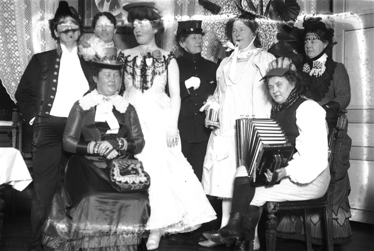 Ett grupporträtt av en teatergrupp som består av åtta kvinnor.