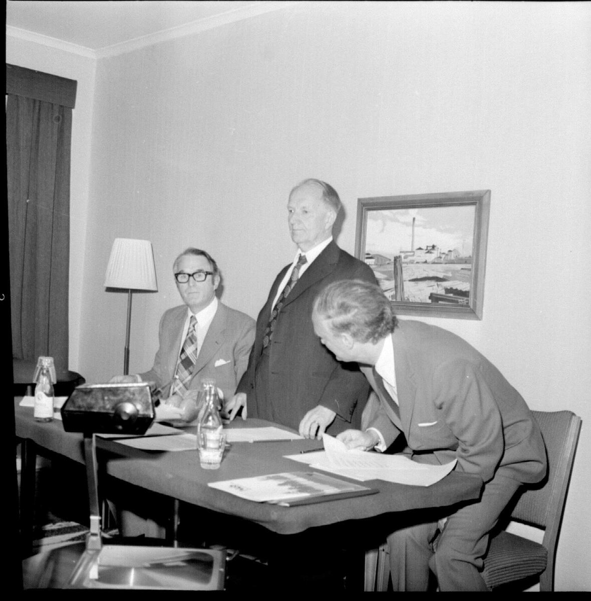 Ncb-stämma ang. sågverken i Dynäs och Kronholmen. På bilden syns dåvarande Ncb-chefen Gunnar Hedlund, Rådom.