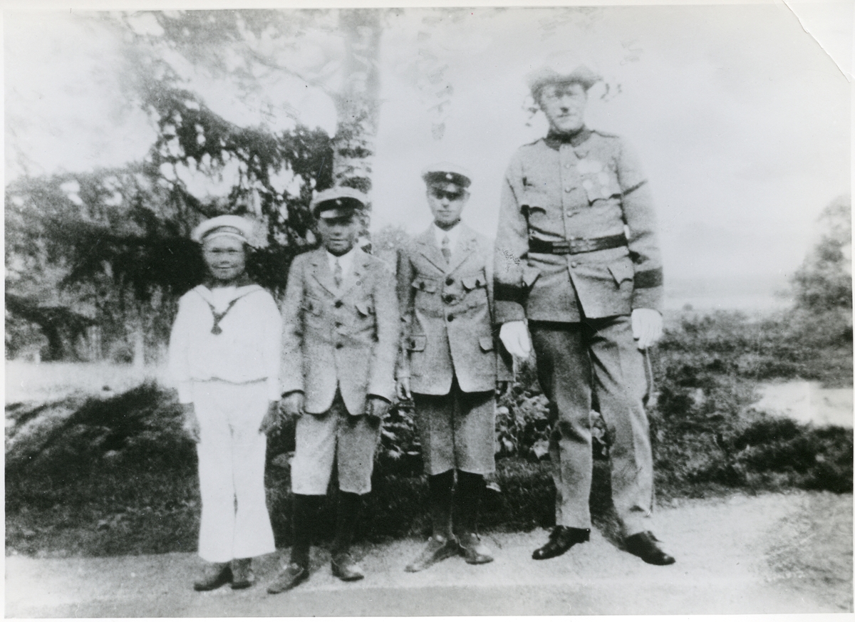 Axel Grip med söner utanför "fiskarstugan", c:a 1922.