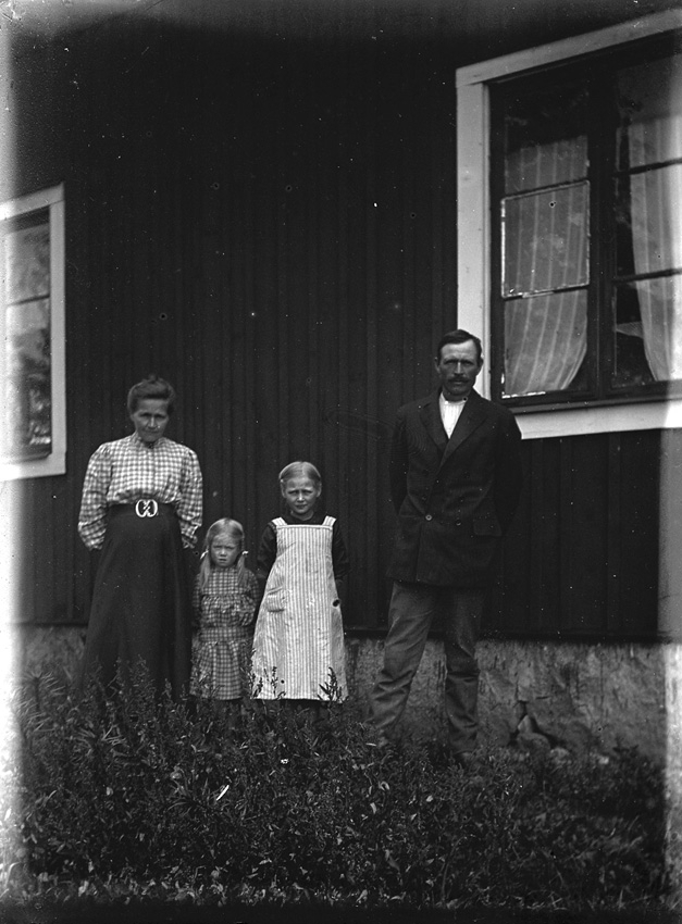 Familj med två döttrar, framför sitt hus, Västerås.