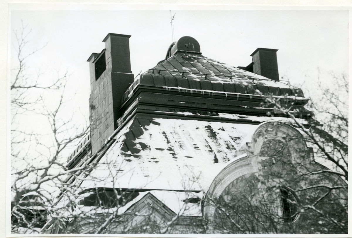 Del av taket på Herrgärdsskolans huvudbyggnad.