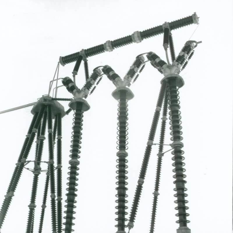 Bilden föreställer någon form av ledningar, turbiner, generatorer som sträcker sig vertikalt från en upptill horisontell ledning.