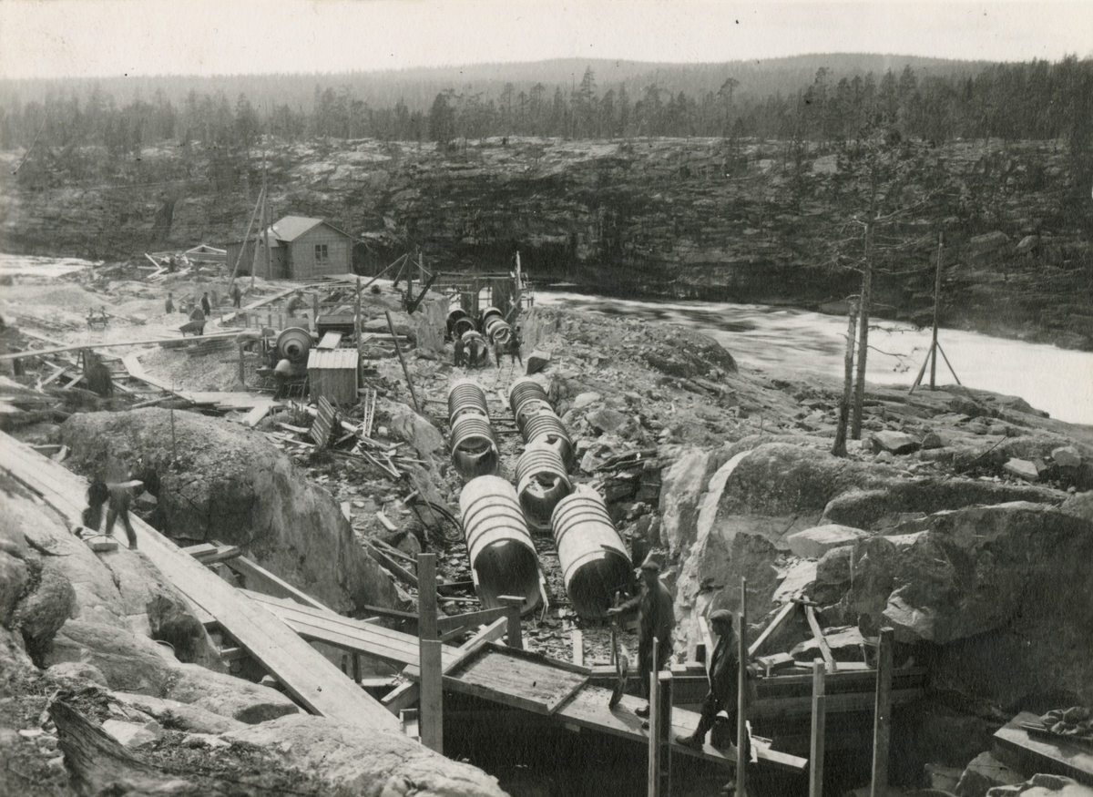 Montage av tubledning i Porjus, Maj - juni 1911.