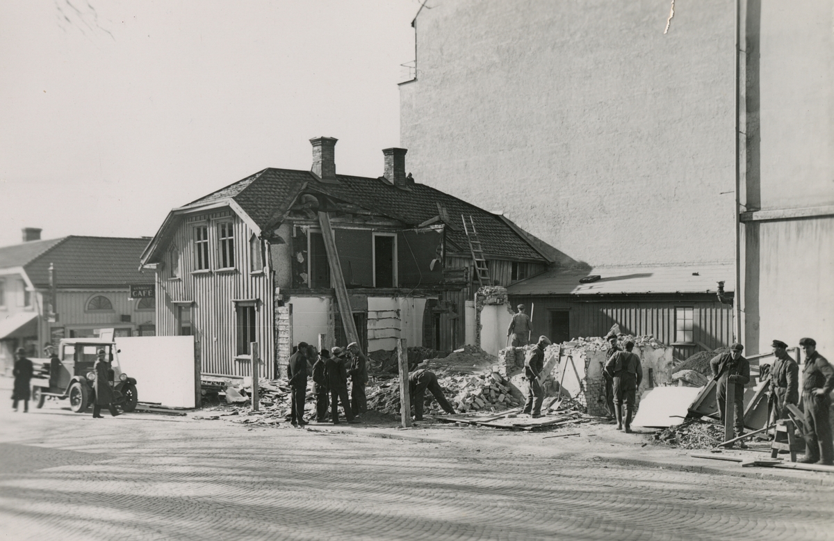 Titel: En del av Petzällska fastigheten revs i april 1924 för nybygge, klart i mars 1925. Åsbogatan.