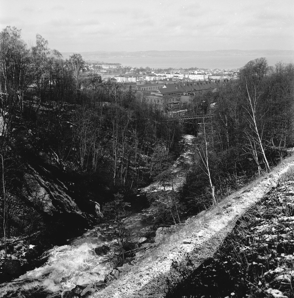 Utsikt från fallen ut över Huskvarna och Vättern.