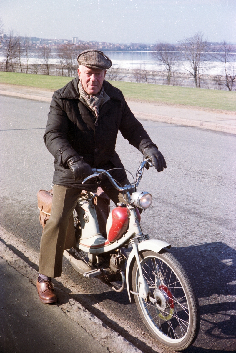 Evert Malm med sin Husqvarna Roulette moped på Grännavägen i Huskvarna.