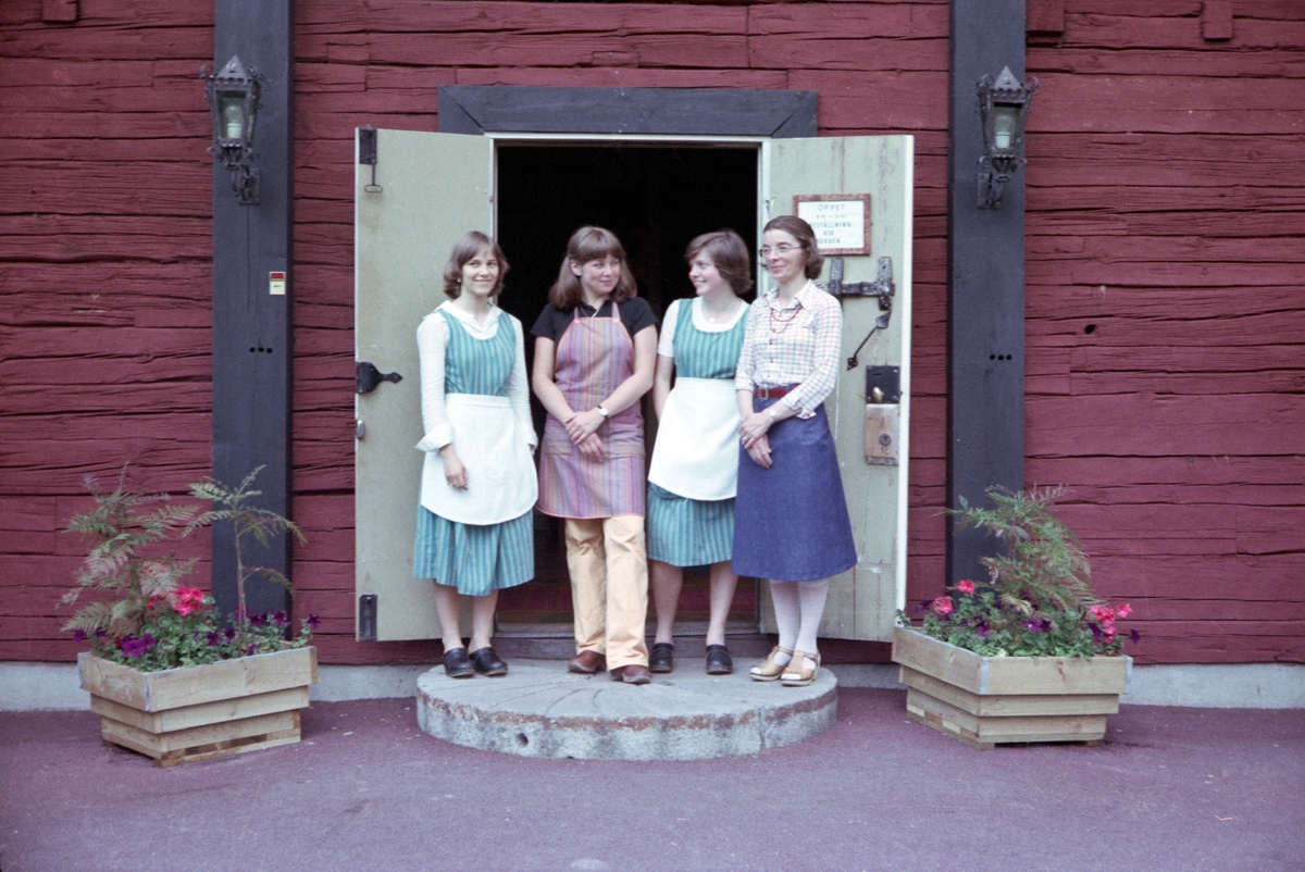 Personal på Kroatorpet i Huskvarna. Skylten på dörren visar öppettiderna och att det är bordsbeställning.
