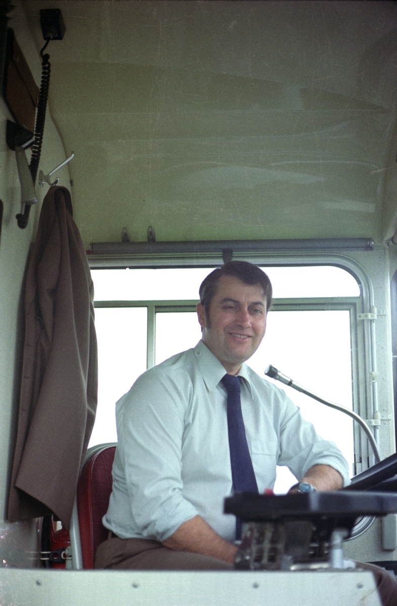 Busschaufför Hans Hansson i en buss i Huskvarna.