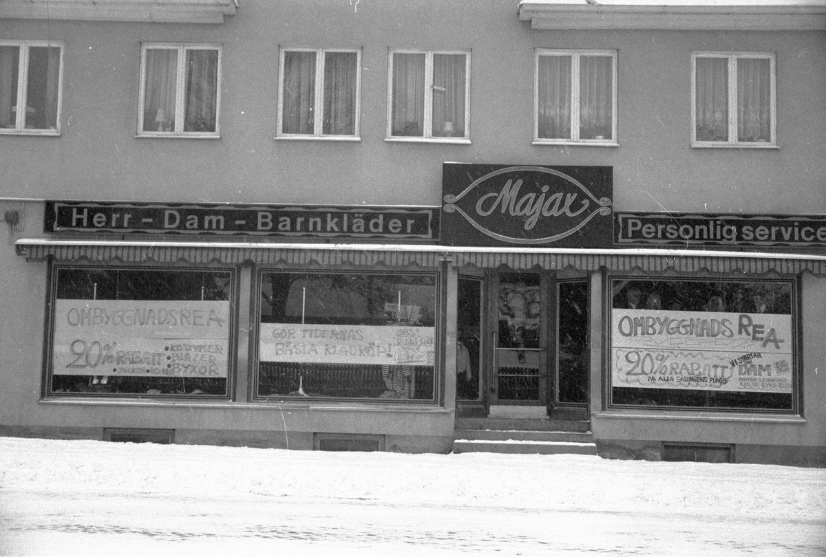Vid Esplanaden i Huskvarna ligger Majax som har Herr-Dam-Barnkläder med Personlig service. Det är ombyggnads REA.