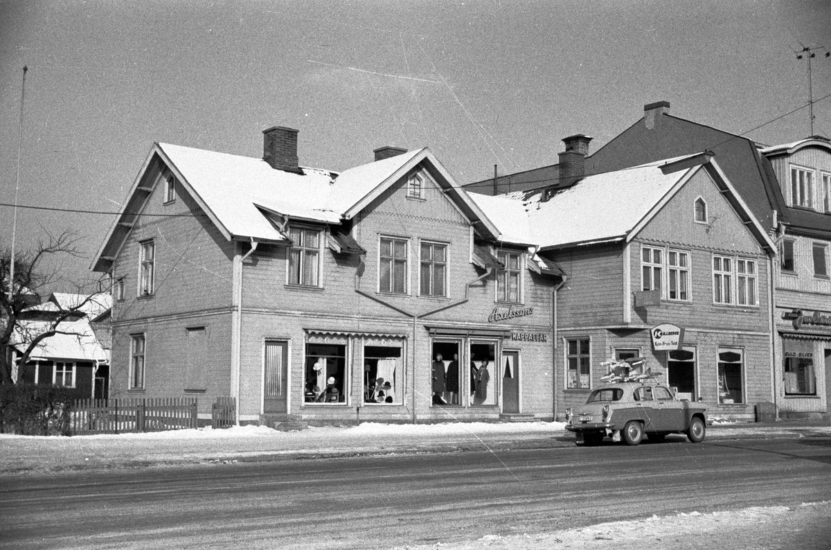 På Rosenborgsgatan i Huskvarna ligger Axelssons kappaffär bredvid Kullbergs Kyla-Frys-Tvätt.