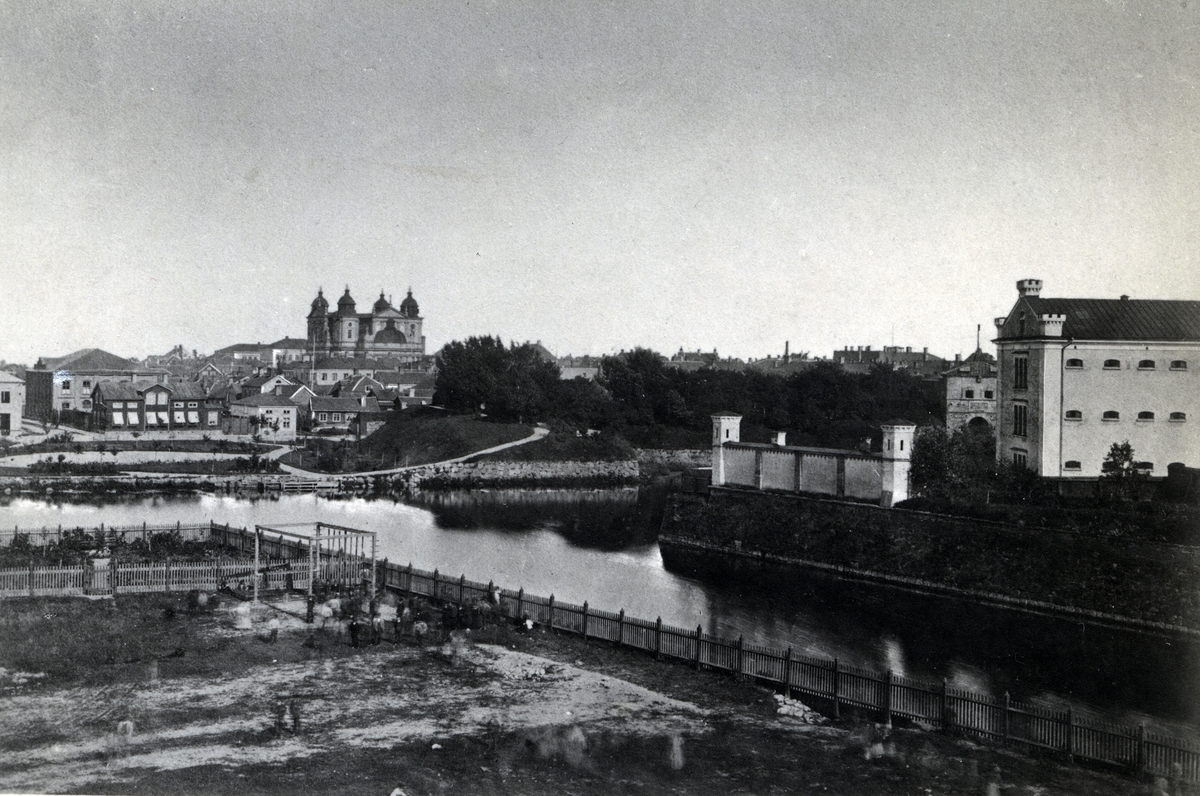 Kvarnholmen, fängelset och gamla vallgraven från Tullskolan.