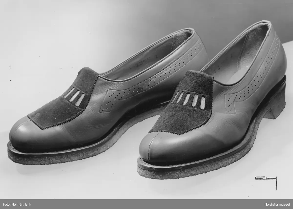 Ett par lågskor med moccaskinn, perforeringar och rågummisulor.
