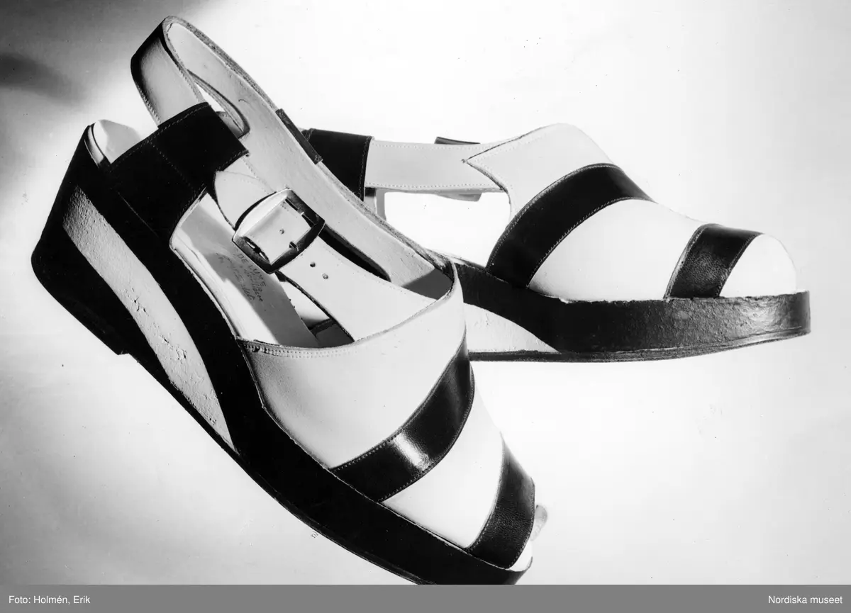 Sandalskor av vitt och blått skinn med bocksulor i färg.