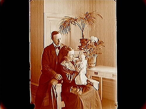 Familj, 3 personer. Rumsinteriör.