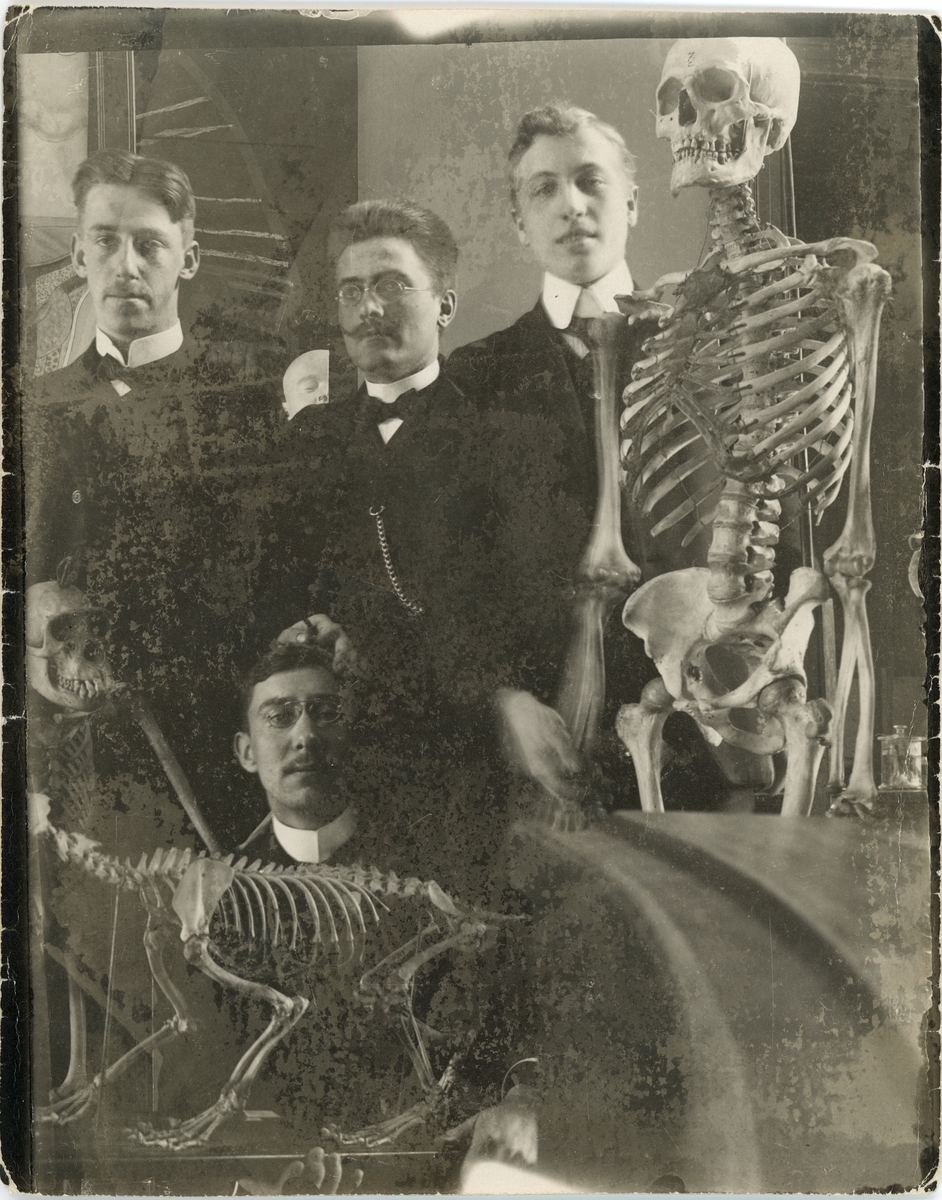Läkarstudenter vid skelett, Akademiska sjukhuset, Uppsala