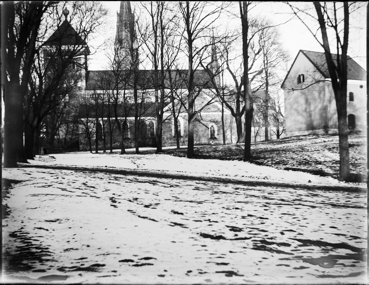 Helga Trefaldighets kyrka och domkyrkans torn i bakgrunden, Odinslund, Uppsala