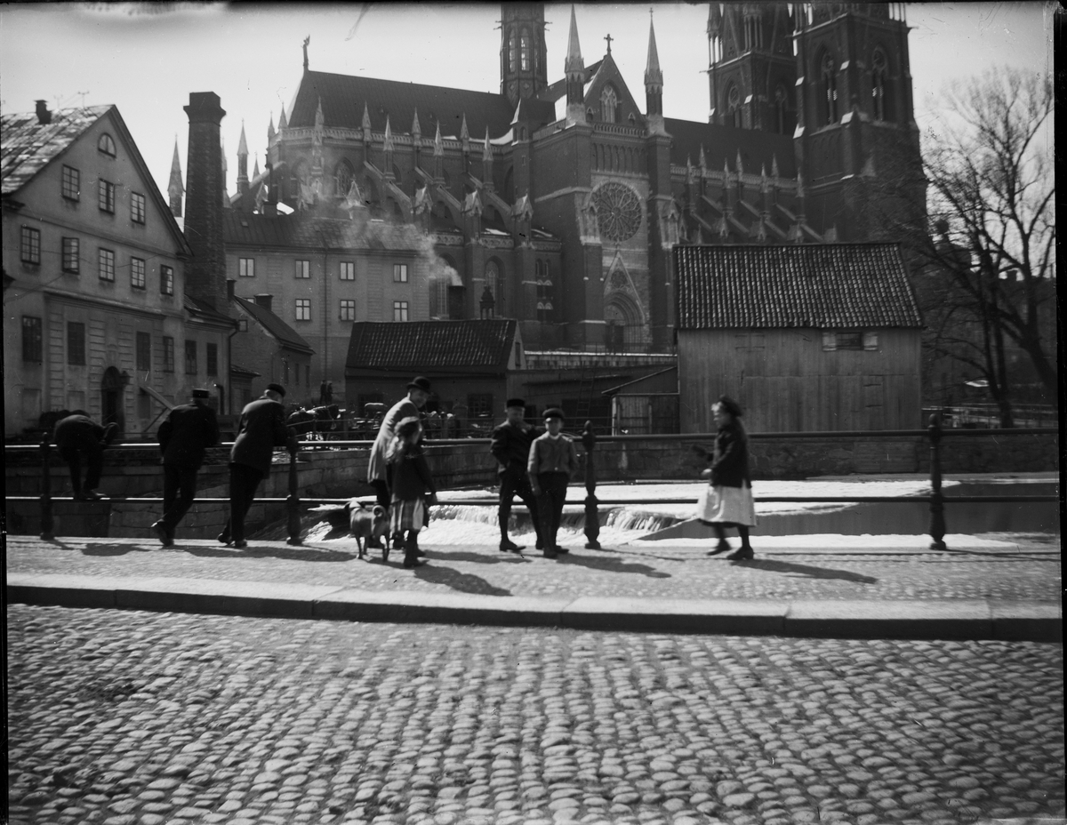 Titel: Uppsala domkyrka och Akademikvarnens gård från Östra Ågatan, Uppsala efter 1893