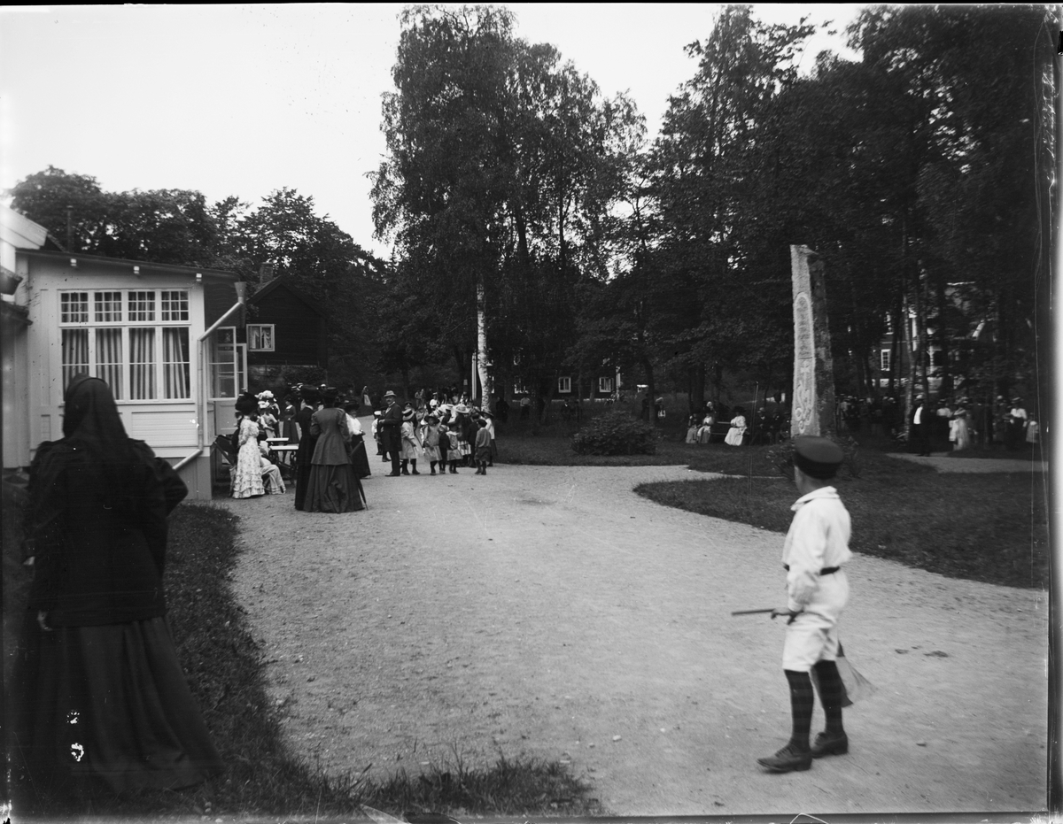 Folkvimmel utanför restaurangen, Sätra brunn, Sala