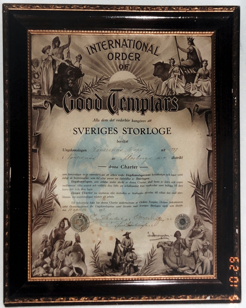 Vänersnäs. Lilla Lunden 1:11. Logen 411 Åkers Stjärna. Avfotograferad tavla