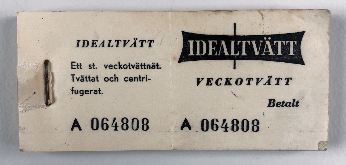 Vänersborg, Idealtvätt. Kvitto på tvätt av veckotvättsnät