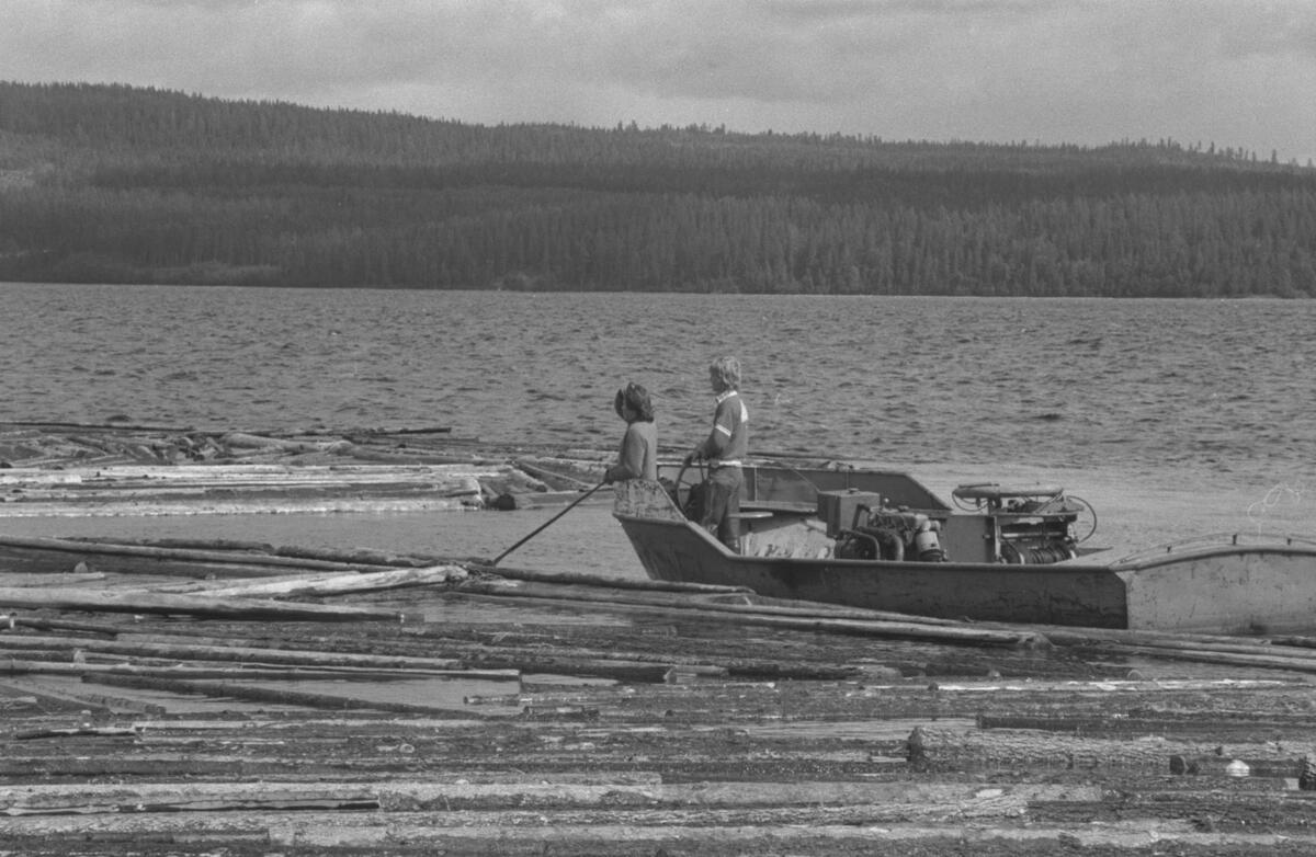 Uppströms Strömsundsbron. Två \"tappar\" kopplas ihop, bakre delen.