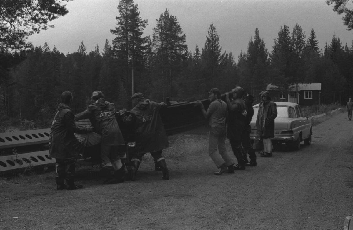 Båtarna tas från Sporrsjön till Finnsjön på bilsläp med Reidar Ragnarssons bil.