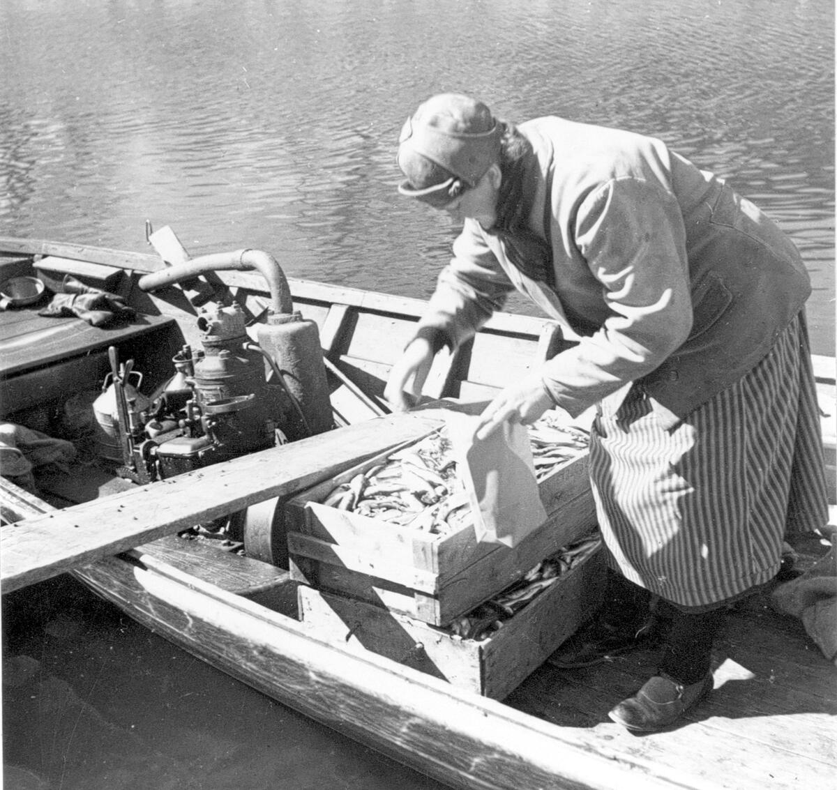 Fiskförsäljning. Fru Hägglund hjälper till (syster till "Lång-Fanny" Boström)