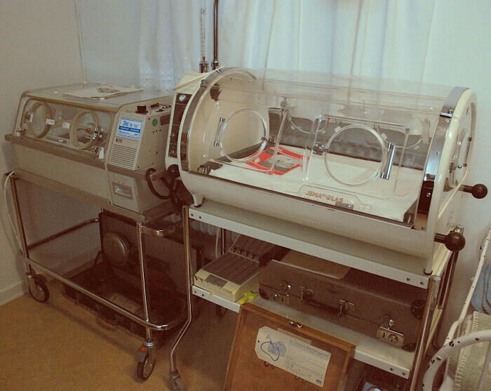 1) Babykuvös från BB-avdelningen. 2) Transportkuvös från BB-avdelningen.