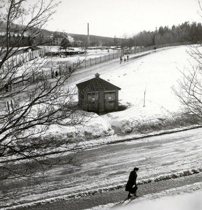 Bilden visar Tullportgatan(Kaisersbacke) och Tullportparken i vintertid.