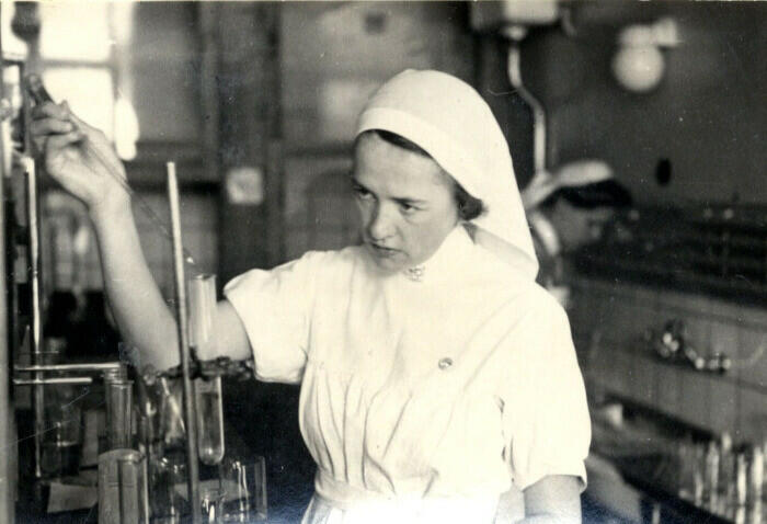 Bilden visar en sjuksköterska som gör kolsyretal, föregångare för vätekarbonatstandard.