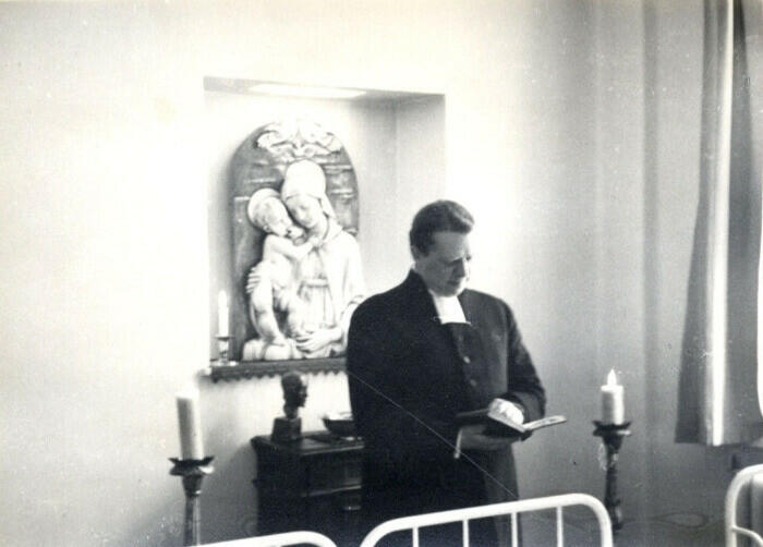 Dop varje onsdag. Barnen bars fram av BB personal eller anhörig. Vissa mammor deltog liggande i sängen.