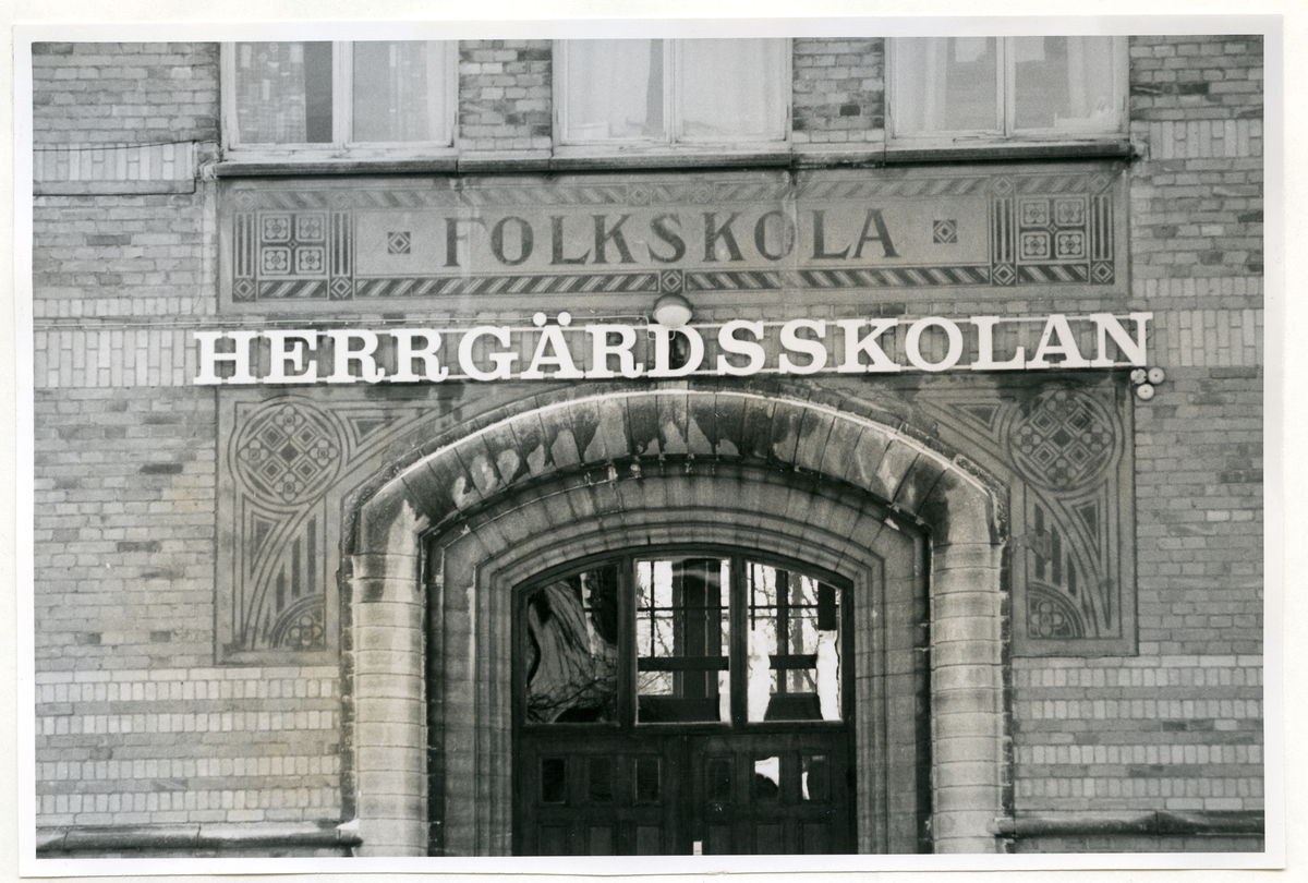 Engelbrektsgatan 19. Stora entrén till Herrgärdsskolans huvudbyggnad.