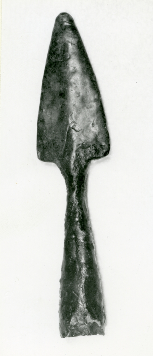 Pilspets av järn funnen vid grävning för sommarstuga vid Billsta i sträckning mot Svartån 1937. 1972.
