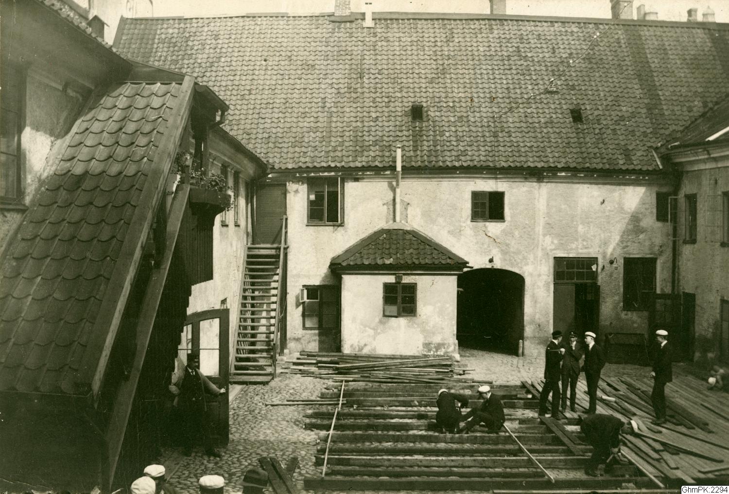 Byggnation till Barnens dag 1919. Innergården till före detta Högvakten/Stadshuset.