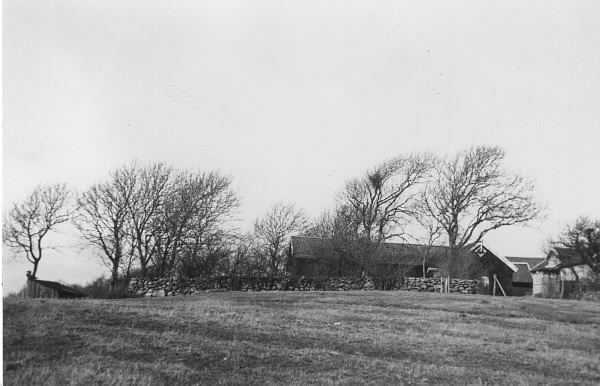 Håkulla gård i Onsala på en höjd med några träd runt husen. Håkulla var i äldre tider en hel by som bestod av fem gårdar. Byn började skiftas i början på 1800-talet och vid seklets slut låg två av dem kvar.