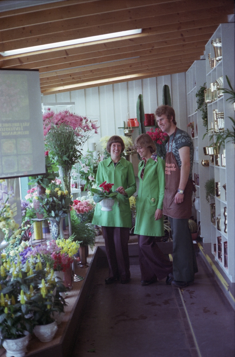 I affären Ericsons blommor, på Vättergatan 9 i Huskvarna, arbetar bland annat Ann-Britt (1) och Tor Langseth (3).