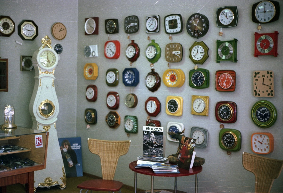 Interiör från ett Urmakeri på Erik Dahlbergsgatan i Huskvarna.