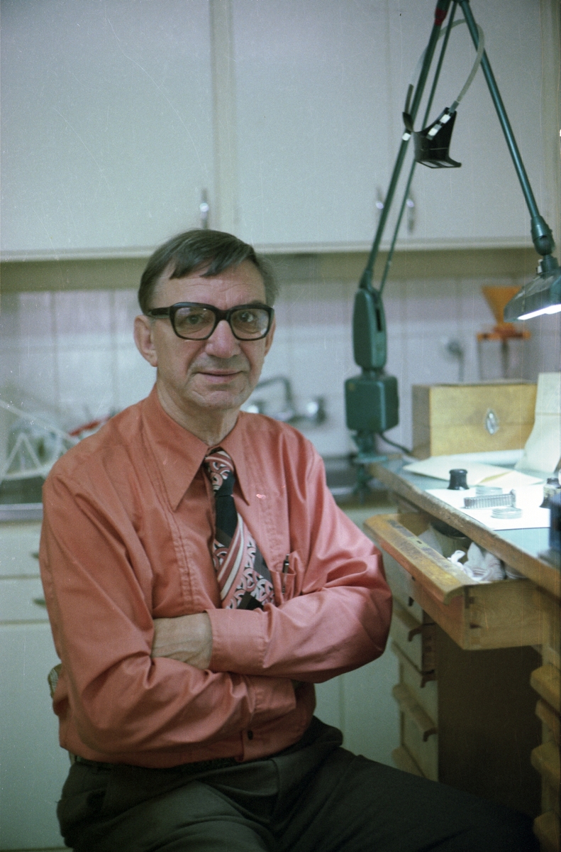 Urmakare Olle Johansson i ett Urmakeri på Erik Dahlbergsgatan i Huskvarna.