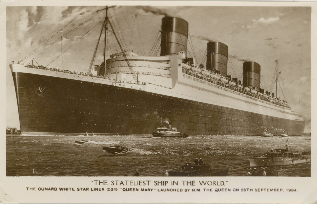 Vykort med passagerarfartyget RMS Queen Mary.