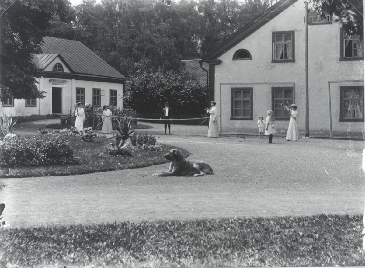 Vy från Falsterbo Järnbruk. Byggnaden till vänster var en flygelbyggnad till herrgården, och det enda som blev kvar efter en eldsvåda.